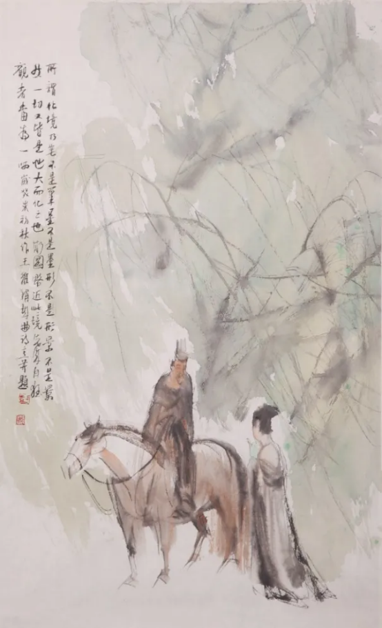 此次展览以“驿”为展览的空间意象,分为“梦·入境”“途·传檄”“驿·启封”三个篇章。第一章“梦·入境”展现艺术家以笔墨筑梦,引领观者入画中之境。第二章“途·传檄”展现创作者以笔锋书写时代抱负,在墨色浓淡间寄托对时代的理想。第三章“驿·启封”,每一幅画作都承载着历史记忆,工笔写意间蕴藏深沉思索。每一件展品都是一封跨越时空的“信”,而“马”便是承载千年文脉的文化信使。观众可化身“驿丞”,在移步换景中,逐一“拆阅”笔墨间的心意,开启一场从内心梦境出发、穿越现实烟火、抵达历史记忆的文化之旅。