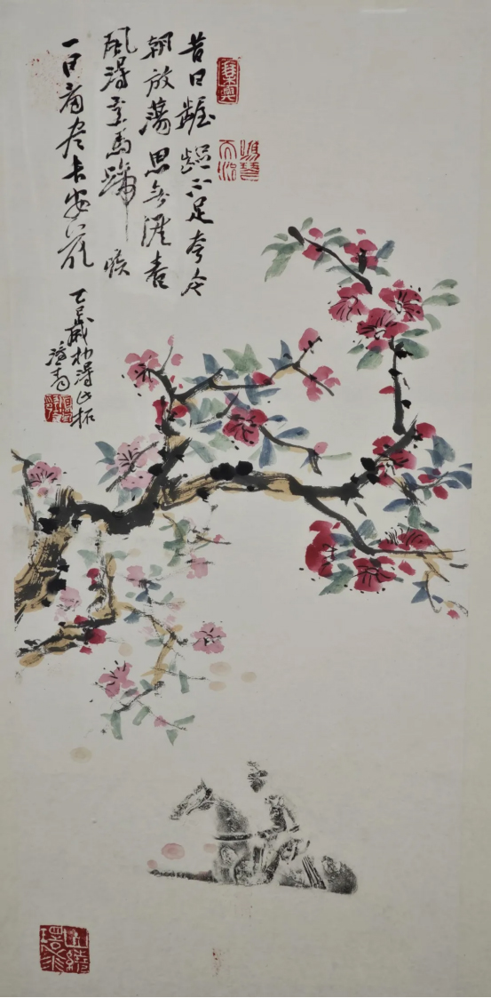 本次展览特别为观众呈现齐白石《十二属图之如此千里》。白石老人鲜少画马,在这件作品中,他以极为简约的线条勾勒脱缰之马的奔腾,不刻意追求雄骏之意,却流露出独特的稚拙韵味。近期爆火的“马彪彪”潦草小马就是以其为原型。这也是“马彪彪”第一次与自己的原型同台亮相。为了将白石老人“马到成功”的祝福送给观众,北京画院特别以《如此千里》为母本,限量发行复制品1000件,作为丙午新春贺礼。随后,《如此千里》将与全套《十二属图》奔赴山东美术馆,完成“学我者生——齐白石与山东弟子”特展换新。届时,山东的观众将于新春到来之际,一睹这套重磅展品的风采。