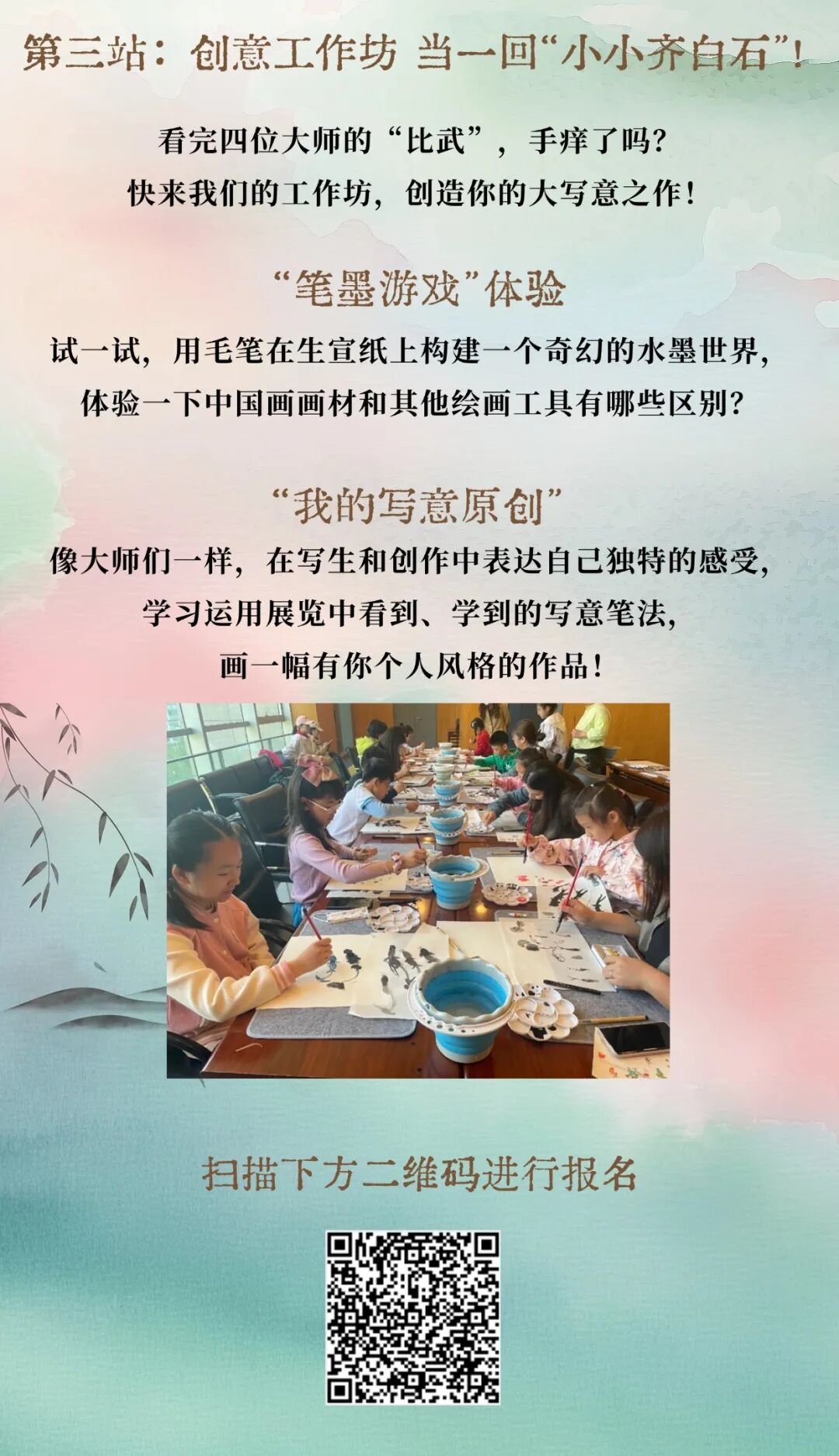 课程将在专业导师的带领下,破解画中的笔墨密码,看懂大师们如何“隔空对话”。在工作坊尝试用毛笔在生宣纸上构建一个奇幻的水墨世界。