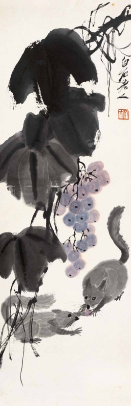 葡萄松鼠 齐白石 无年款 88.5cm×29cm 纸本设色 北京画院藏
