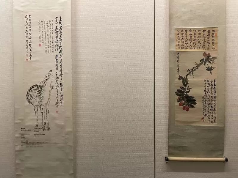 此外,吴昌硕《临八大山人鹿图》,与八大山人《椿鹿图》并置展出,更显其深厚的临古功力。通过这种方式,展览揭示的不仅是齐白石与三家的师承关系,更展现三家之间延绵不断的对话与传承。