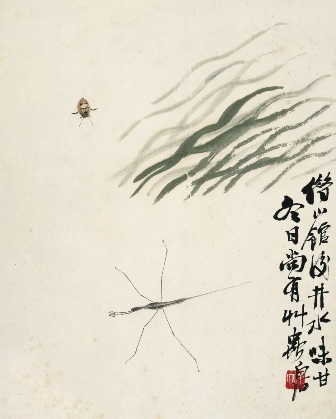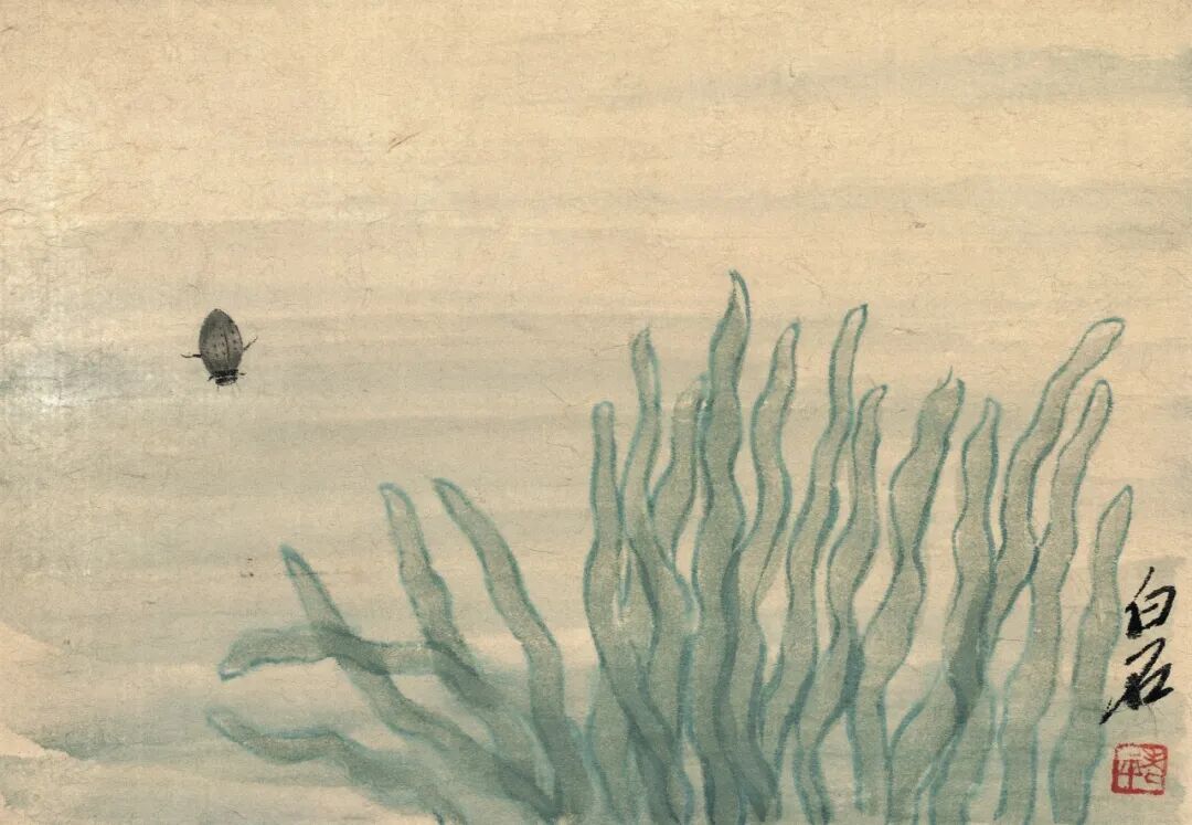 齐白石《豉甲和水黾》(《工虫画册精品》八开之八)册页