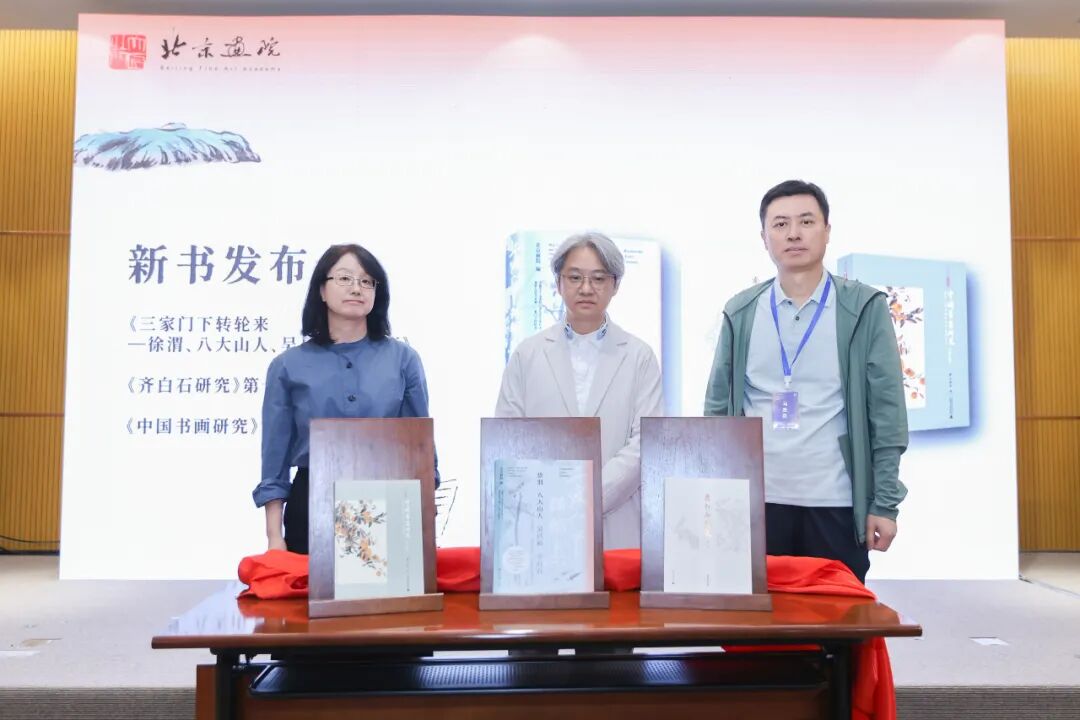 9月24日中午1:30,在北京画院创作楼2层报告厅举办了隆重而简短的开幕式。开幕式由北京画院副院长郭宝君主持,北京画院院长吴洪亮致欢迎辞,新聘齐白石艺术国际研究中心学术委员会主任尚辉代表与会专家致辞,北京画院理论研究部主任、齐白石艺术国际研究中心、传统中国绘画研究中心执行主任吕晓做了2025年工作汇报,并对2026年两个中心的工作进行了展望。最后,北京画院院长吴洪亮、北京画院党委书记马胜民、广西师范大学出版社美术分社社长冯波共同为三本新书启幕。