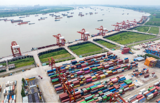 这是2024年6月1日拍摄的武汉阳逻港(无人机照片)。(杜子璇 摄)