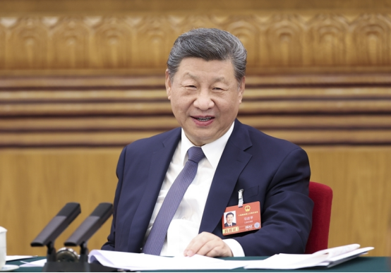 3月5日下午,中共中央总书记、国家主席、中央军委主席习近平参加他所在的十四届全国人大四次会议江苏代表团审议。新华社发(盛佳鹏 摄)