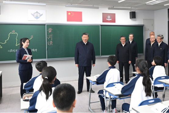 北京市援建的北京四中雄安校区2023年8月投入使用,现有学生380多人。教学楼里,学生们正在上课。习近平走进初一(2)班教室,同师生交谈,了解教学情况。他希望把北京四中办学的好经验好做法带过来,用心用情呵护孩子们身心健康,促进孩子们全面发展。