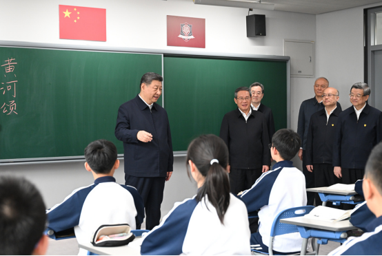 3月23日,中共中央总书记、国家主席、中央军委主席习近平在河北雄安新区考察,并主持召开深入推进雄安新区高质量建设和发展座谈会。这是23日上午,习近平在北京四中雄安校区考察时,走进教室同师生亲切交谈。新华社发(盛佳鹏 摄)