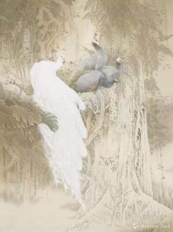 安华平主攻工笔花鸟画,他的艺术取向更加暗合了北京画院的前辈画家于非闇及其弟子俞致贞的文脉,造型精致典雅。但是安华平的作品用色更趋素淡,以白粉居多,他配景的花草也突破了前人的牡丹、梧桐等,使用了很多云南热带雨林的植物形象,也作了减色处理,避开浓艳、取其淡雅,这就使他的工笔花鸟形象更加远离了尘俗气息,高洁迥出,自成一格。