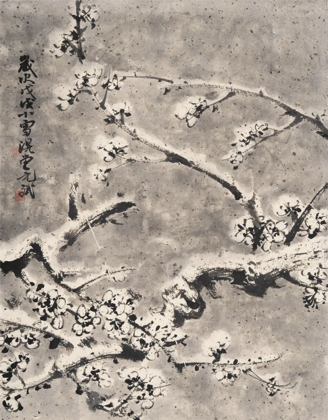 写生开始时,我们需要先用淡墨勾勒出画面大致的走势。在这个阶段,我们不必过分关注细节,而要确定整体的布局。接下来,要控制好墨色的深浅和笔中水分的多少。在大的势确定之后,我们便可以开始描绘细节。如,在老枝上,我们可以表现一些纹理和细节,体现苍老感等。