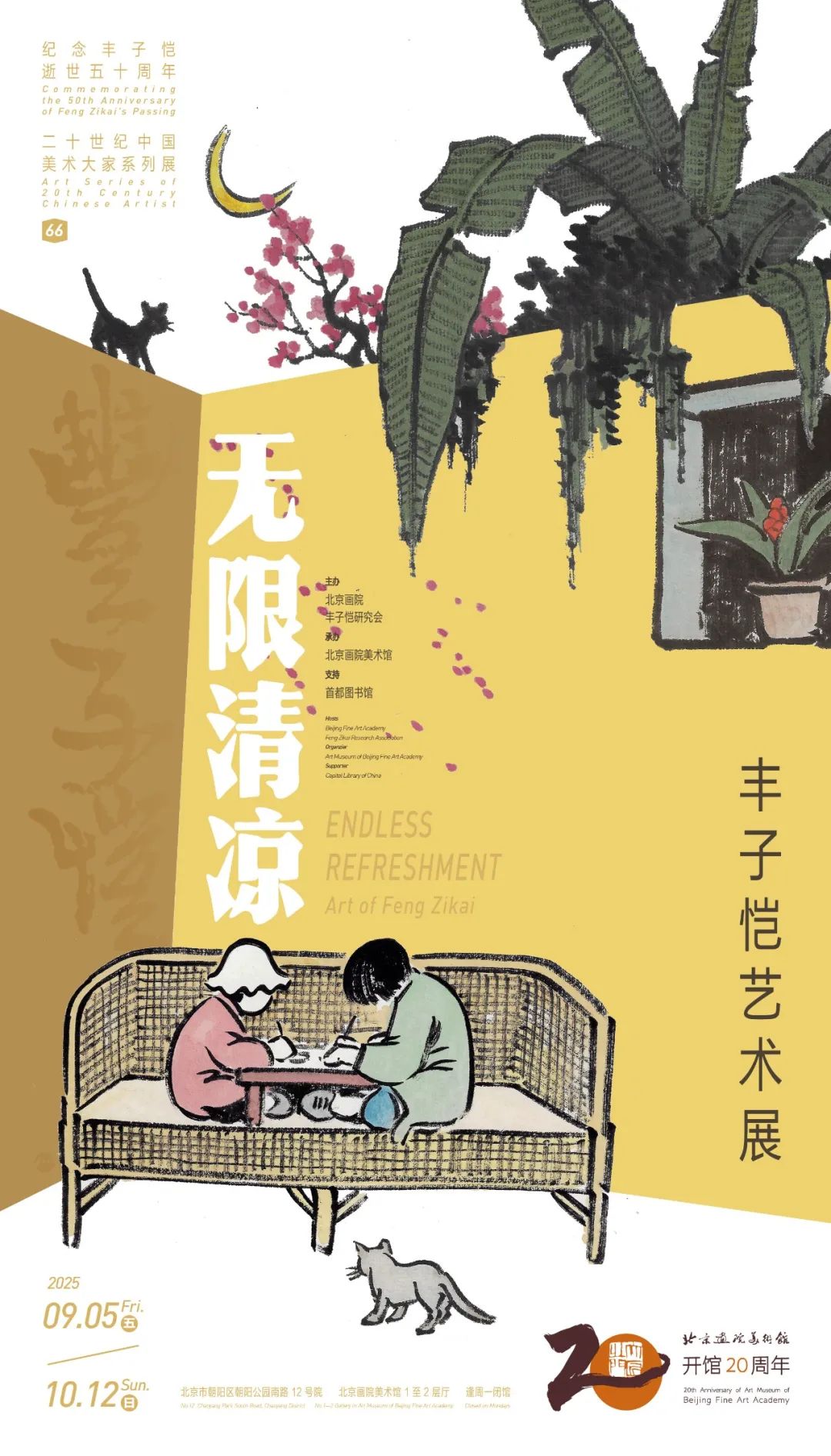 2025年,适逢丰子恺先生逝世五十周年。由北京画院、丰子恺研究会联合主办的“无限清凉——丰子恺艺术展”览以“无限清凉”为题,分为“诗意之情”“护生之心”“童真之趣”“闲逸之韵”四大板块,并辅以书信、手稿、文献展品以及多种互动体验,构建出一个多维度的展览空间,将丰子恺温润通透的艺术世界娓娓道来。这不仅是一场纪念,更是一次跨越时空的对话,引领观众走入他那既入世又出尘的精神家园。