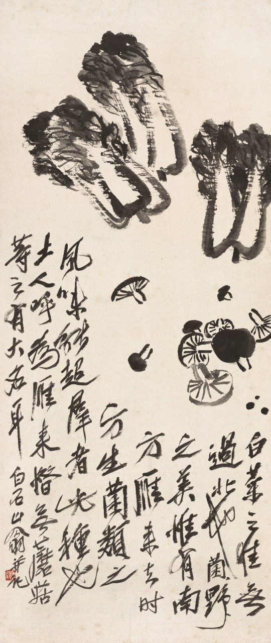 白菜蘑菇 齐白石 109cm×46cm
