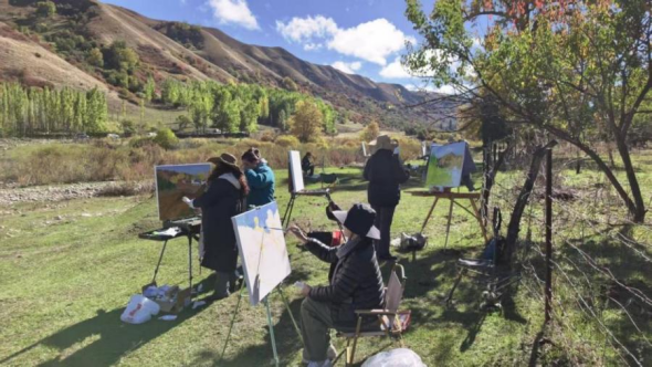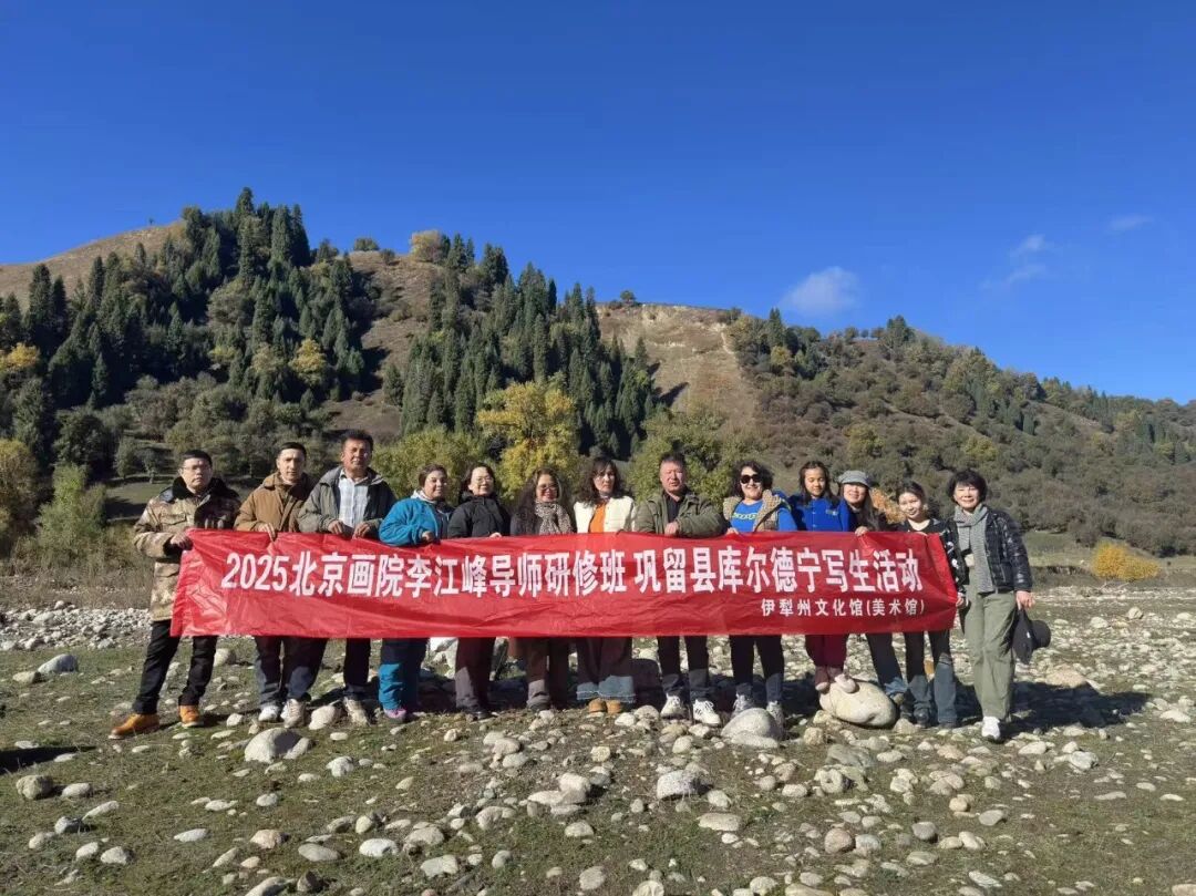 2025年10月7日,北京画院“李江峰油画色彩与写生创作研学班”在新疆伊犁圆满收官。为期一周的写生研学中,李江峰导师带领9名学员深入伊犁,以高强度户外写生直面自然,捕捉光影变幻,锤炼色彩语言,累积创作素材,共绘就多幅油画写生佳作。
