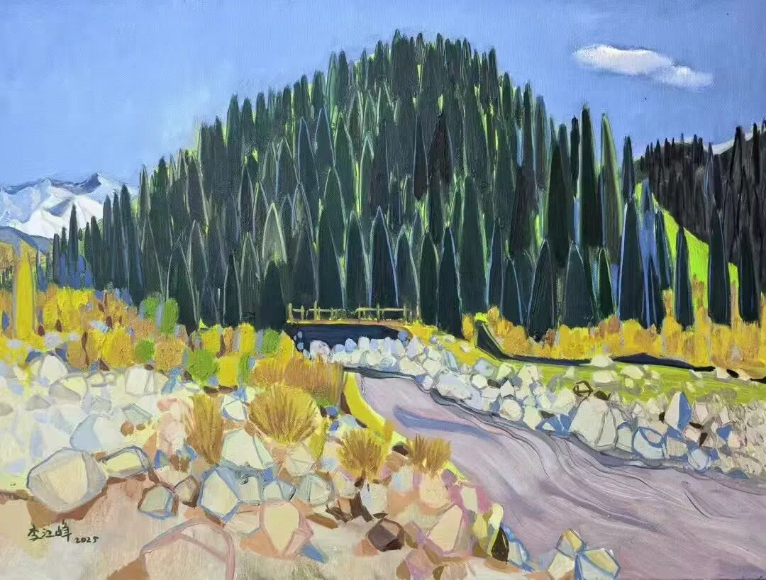 2025年10月1日至8日,于我们而言,是一段收获满盈又格外愉悦的假期——北京画院在新疆伊犁库尔德宁景区,为我们开启了一场为期7天的油画研修之旅。本次研修班由北京画院著名画家李江峰女士亲授,我与阿卜杜库杜斯·阿布都艾尼、陈丽、果海英、哈丽努尔·木力克、韩小英、努尔巴努·阿里木江、邱保金、热西旦木·亚库甫等学员一道,共赴这场艺术之约。