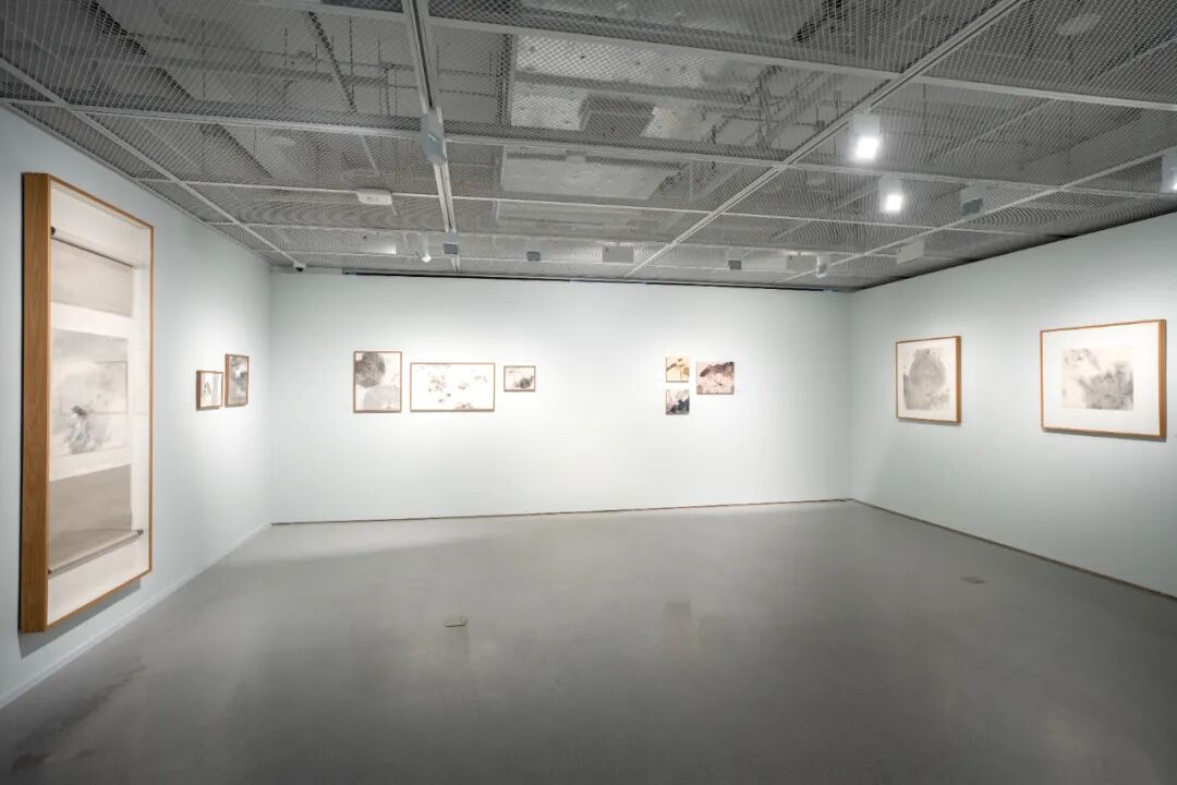 “听懂风土和时间”单元则呈现了周思聪在85新潮后对荷花题材的持续探索。她的荷花系列既保留了传统笔墨的韵味,又融入了现代构成方法,形成了独特的个人风格。这一部分的作品如《颐和园一角》等,展现了她如何在时代潮流中保持独立,以自设课题的方式回归中国绘画的精神本源。