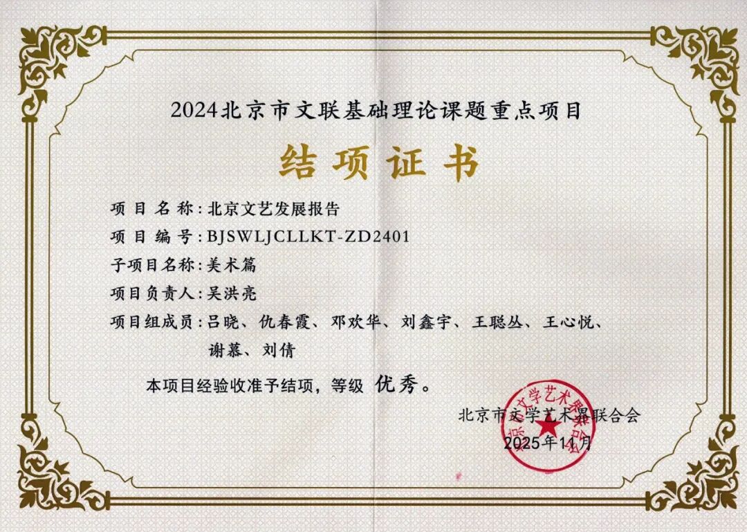 “北京文艺发展报告”子项目“美术篇”结项证书