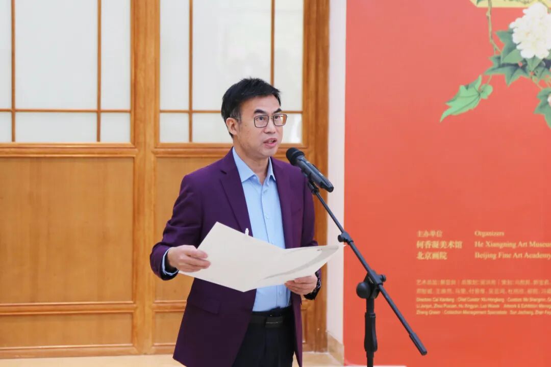 何香凝美术馆馆长蔡显良在欢迎辞中指出,北京画院是何香凝美术馆重要的合作伙伴,多年来保持着密切的交流与合作,推出的多项展览均获得业界与公众的广泛赞誉。值此岁序更新之际,两馆再度携手,精心遴选出北京画院藏花鸟画精品,推出此次“笔端岁集”特展。花鸟画作为中国传统绘画的重要脉系,历来承载着文人墨客的精神寄托与审美理想。自1957年北京中国画院成立以来,一代代艺术家汇聚京华,在“百花齐放、百家争鸣”方针指引下,深耕民族文脉,融汇时代气象,创作出大量兼具传统精髓与时代精神的佳作。本次展览不仅是对一段艺术历程的深情回望,更旨在以笔墨中蕴含的生机,为粤港澳大湾区增添融融春意与盎然文蕴。