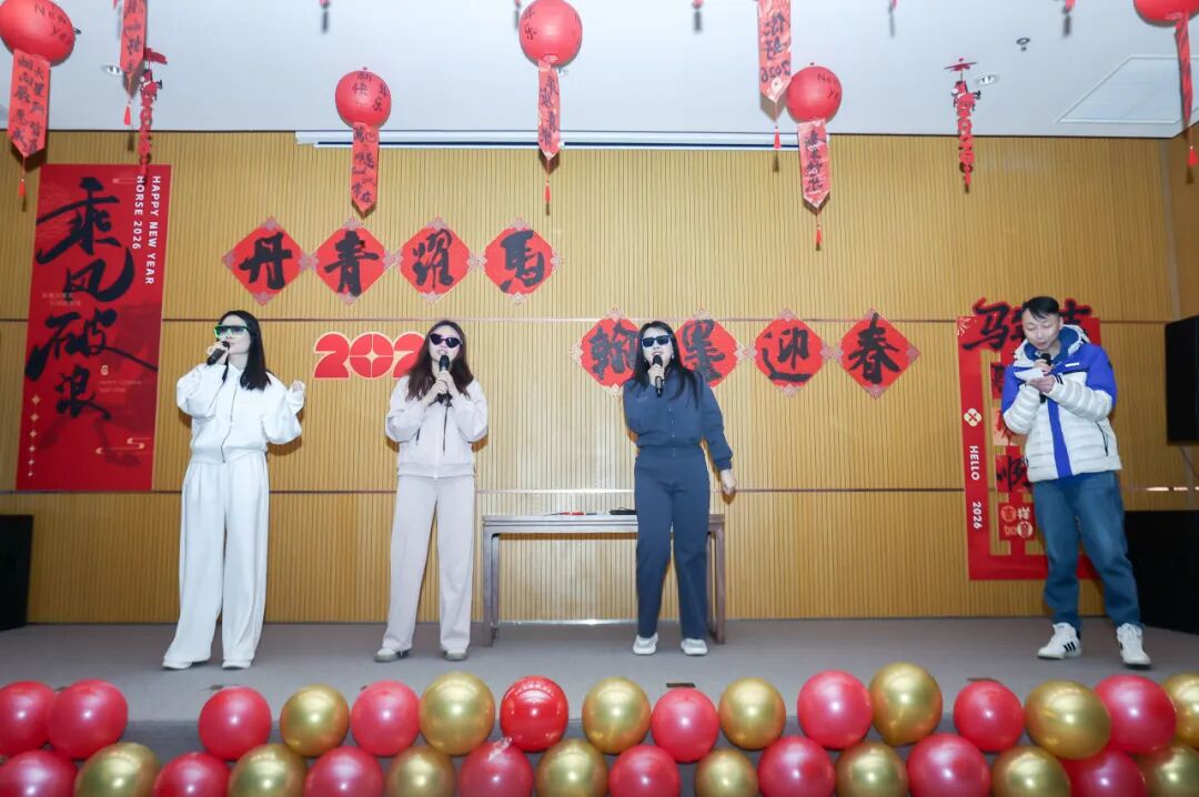成语接龙游戏,邀请现场姓马和马年出生的员工参与,满含 “马” 字的吉祥成语脱口而出;“看图说话”与击鼓传花游戏更是调动起全员热情,被抽中的职工即兴表演,给大家拜年。现场掌声、笑声交织不断。