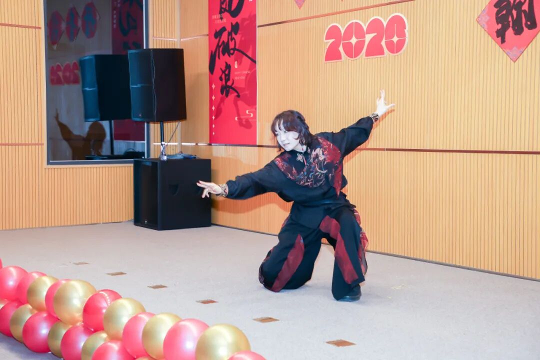 独唱与舞蹈节目轮番登场,为联欢会注入了艺术气息与无限活力。郭宝君副院长的陕北民歌清唱高亢嘹亮,画家魏葵的《阿瓦尔古丽》、徐卫国的《苹果香》、韩斌的《梦回家乡》以及美术馆冯葳的《从开始到现在》,或深情婉转或豪迈洒脱,尽显专业唱功。人事人才部改编歌曲《敬业阵线联盟》,风趣诙谐中唱出画院人恪尽职守的担当与活力。