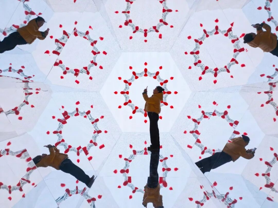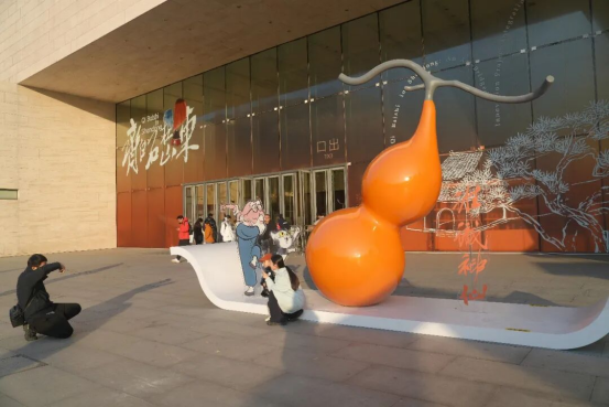 游客与互动装置拍照打卡留念