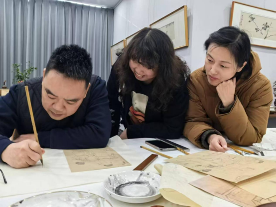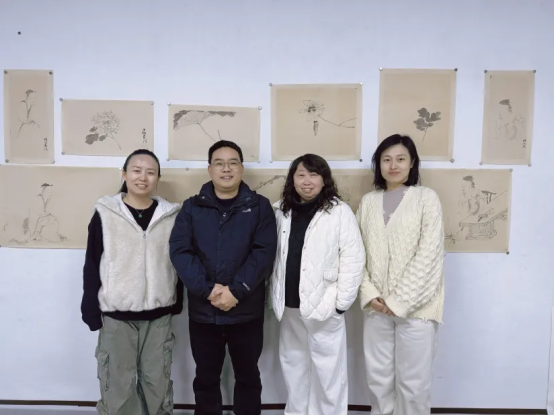 在整个教学过程中,张镇华老师根据每位同学不同的艺术经历和学习进度,一一耐心示范、针对性指导。赵艺博和袁宽两位同学专注线描人物,直面“以形写神、骨法用笔”这门高深功课,跟着张老师一遍遍推敲线条的力道、节奏和弹性,体会如何只用一根墨线,就能勾出人物的神态气韵与衣袂翩然。这不仅是手上功夫的修炼,更是对“气韵生动”这一传统美学的亲身感知——每一根线条,仿佛都在与古人的精神静静对话。