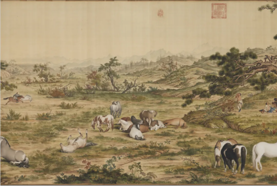 (清)郎世宁《百骏图》(局部) 绢本设色 94.5x776.2cm