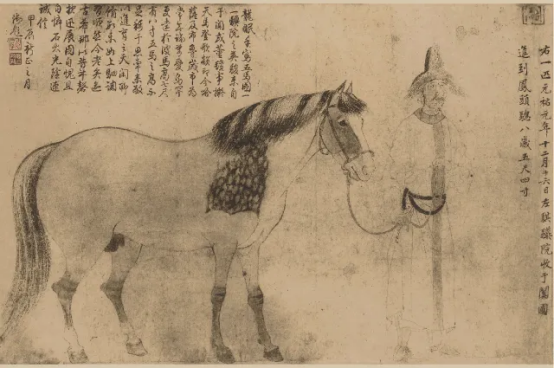 《昭陵六骏图》以唐太宗昭陵六骏石刻拓片为原型创作,是金代画家赵霖创作的绢本设色画。