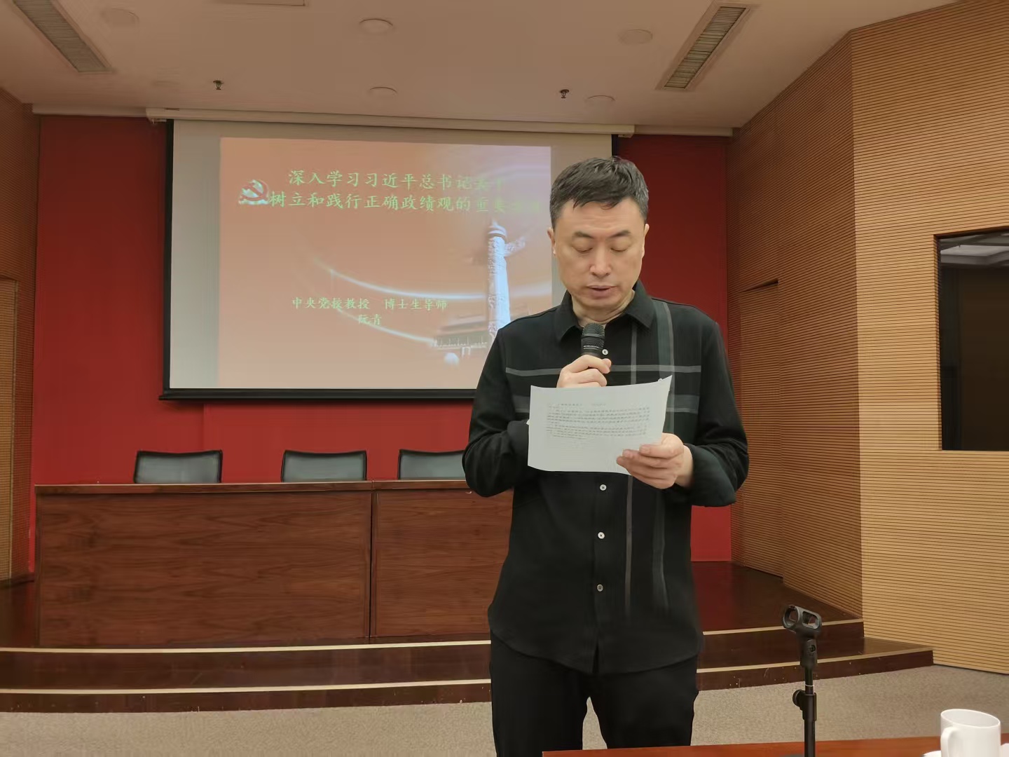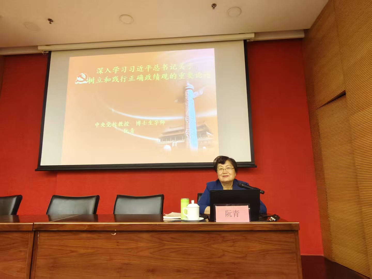 讲座中,阮青教授以《深入学习习近平总书记关于树立和践行正确政绩观的重要论述》为题,以其深厚的理论功底和丰富的教学经验,从历史逻辑、理论内涵、现实挑战与实践路径等多个维度,对正确政绩观进行了系统深入、条理清晰的阐述。她结合大量实际案例,深入浅出地讲解了“政绩为谁而树、树什么样的政绩、靠什么树政绩”这一根本问题,强调要自觉用党的创新理论武装头脑,坚持以人民为中心的创作导向和工作导向,把为民造福作为最大的政绩,努力创造出经得起实践、人民和历史检验的实绩。阮教授的讲座内容翔实、观点鲜明、论述精辟,对全院干部职工深刻理解、自觉践行正确政绩观具有重要的指导意义。